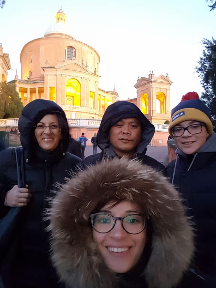 Siamo partiti da Arezzo per un concerto poi una sosta lampo a Firenze, dopodiché abbiamo viaggiato per arrivare all'ultima tappa del nostro pellegrinaggio a Bologna, anche, per visitare la sorella di Padre Bobby che lavora in codesta città.